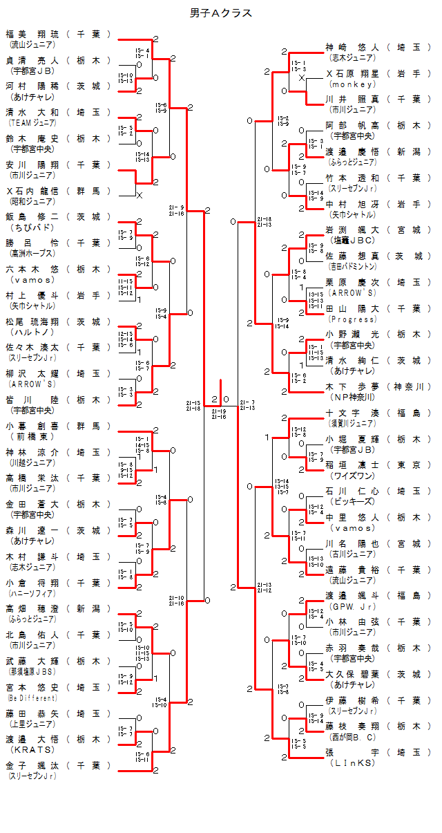 | BA-2 | TEAM Jr.[埼玉] | 清水 大和 | 2 | 15- 5 15- 2 | 0 | 鈴木 庵史 | 宇都宮中央[栃木] | |