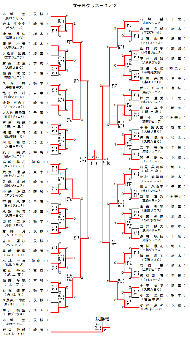 | GB-106 | ‚ ‚¯ƒ`ƒƒƒŒ[ˆïé] | –Øé @—I | ‚Q | 15-9 15-6 | ‚O | ‹v•Û @ˆ² | ‰F“s‹{’†‰›[“È–Ø] | |